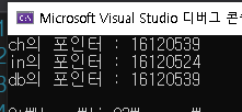 결과를 확인해보면 두 변수의 값은 동일하지만 실제 메모리 상의 포인터 값은 다른 걸 확인할 수 있습니다.