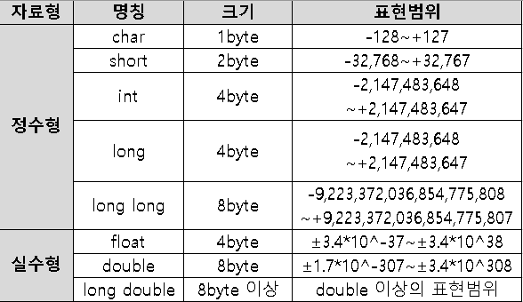 이상으로 C언어의 자료형에 대한 설명은 마치도록 하겠습니다.
