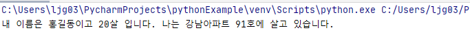 print("내 이름은 %s이고 %d살 입니다. 나는 %s에 살고 있습니다."%(name, age, address))