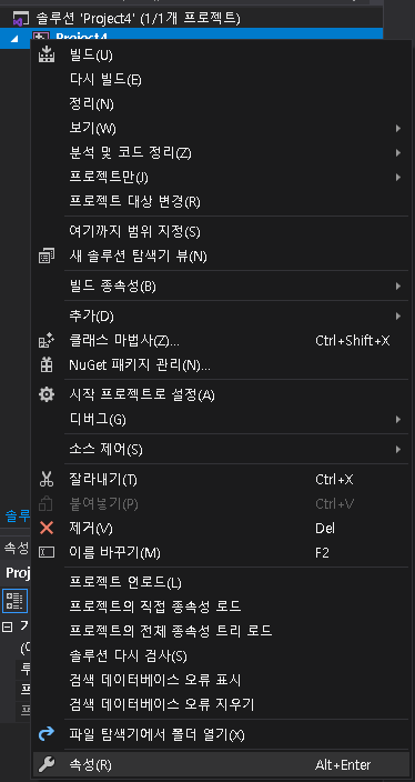 프로젝트 속성으로 들어가 주신 뒤