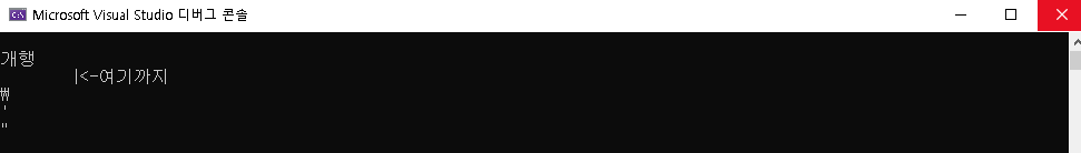 printf("\t|<-여기까지\n");