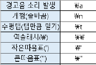 또한 출력 시에 줄 바꿈이나 특수문자 등을 출력할 수 있도록 해주는 것이 따로 있습니다.