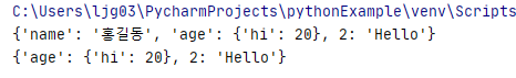 dic1 = {"name":"홍길동", "age":{"hi":20}}
